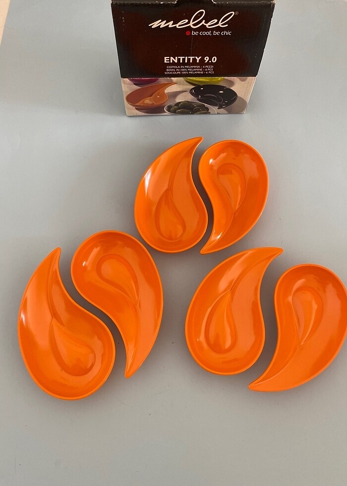 Sıfır ürünü. 6’lı melamin kahvaltı veya çerez hatta ek gıda kaseleri. Yüzde yüz melamin yani toksin olmayan bir madde olduğu için çocuklar için de rahatlıkla kullanılabilir. Kırılmaz malzeme. İtalya’dan alındı.