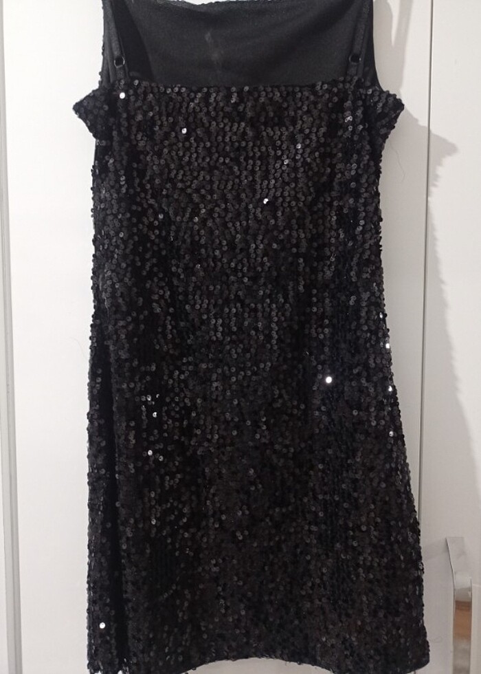 Siyah pullu elbise askılı askı ayarlanabilir kalem elbise boy 77 santim askıdan boy uzatilip kısaltılabilir