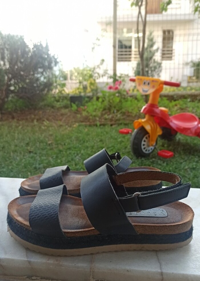 Vitello siyah renk deri kadın sandalet 37