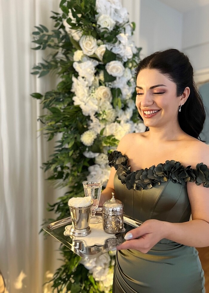 Ürünü bir kez nişanımda giydim 38 beden lakin belinde tadilat var 36 bedene tam uyar