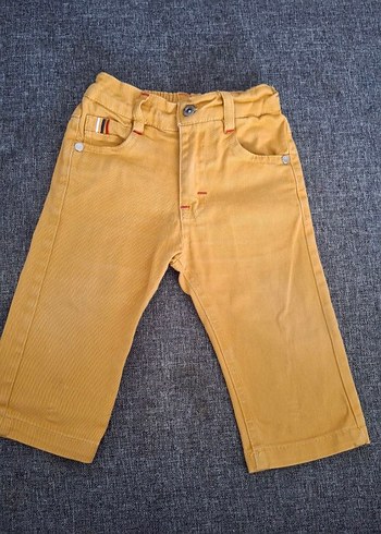 Kapüşonlu, uzun kollu mavi üst ve rahat siyah pantolondan oluşan bebek takımı. Üst kısmında örme detaylar ve baskılı yazılar bulunur.