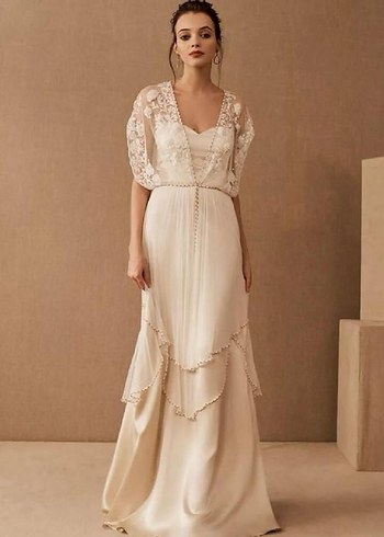Düğünümde 2 farklı tarz gelinlik kullandığım için ikiside temiz ve hasarsız durumdadır. İki çift gelinliğim vintage modeldir. Katlı, şampanya rengi üzerine dantelleri vardır. Hafif kuyruklu olup sırt dekoltesi mevcuttur. İki gelinliğimde özel tasarım ürünüdür. 36 38 bedene uyumludur.