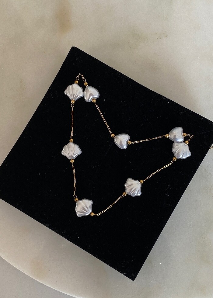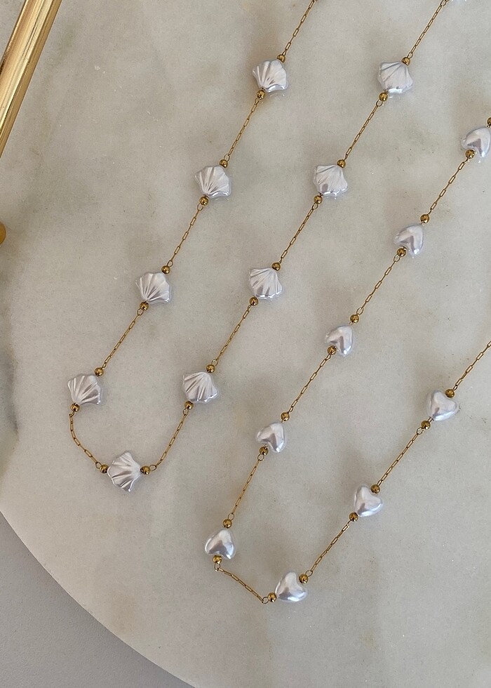 Çelik midye kalp detaylı kolye ADET