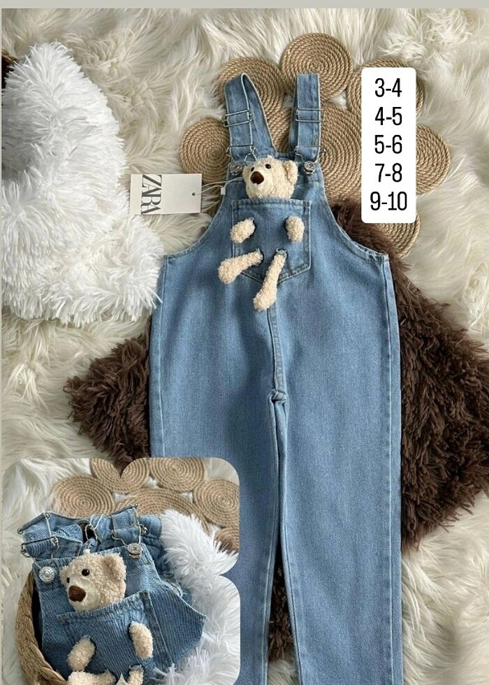 ayıcık anahtarlık detayıyla kot tulum 4-5/7-8/9-10 yaşlar mevcut