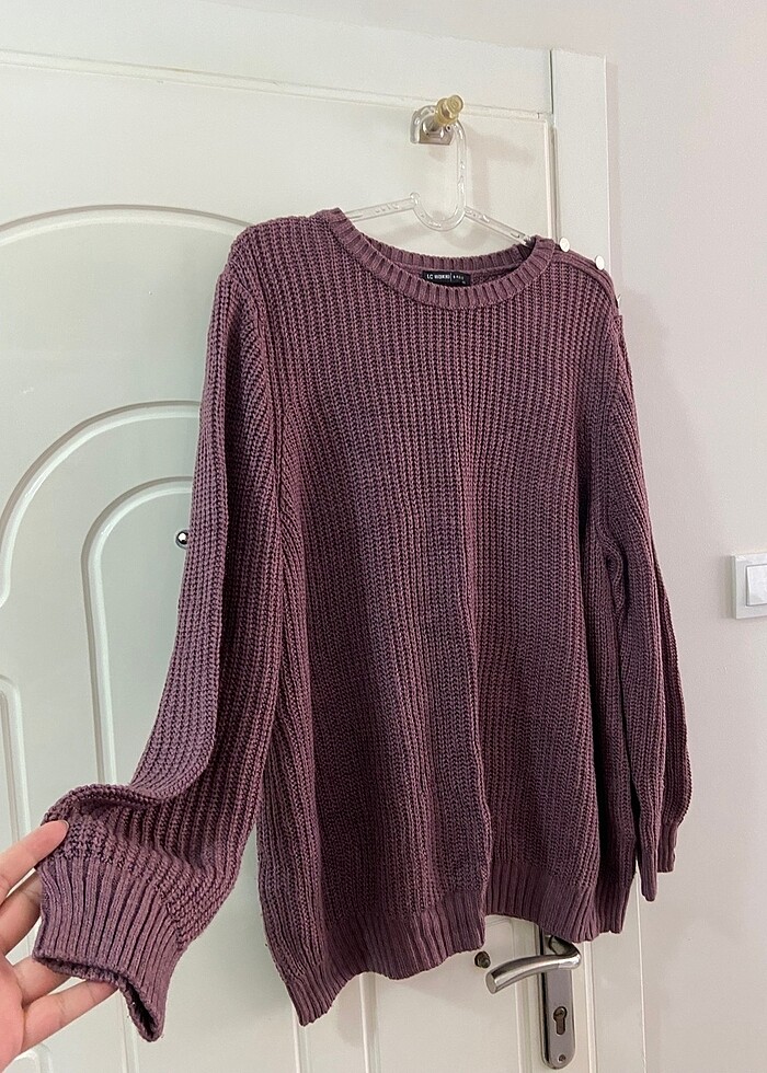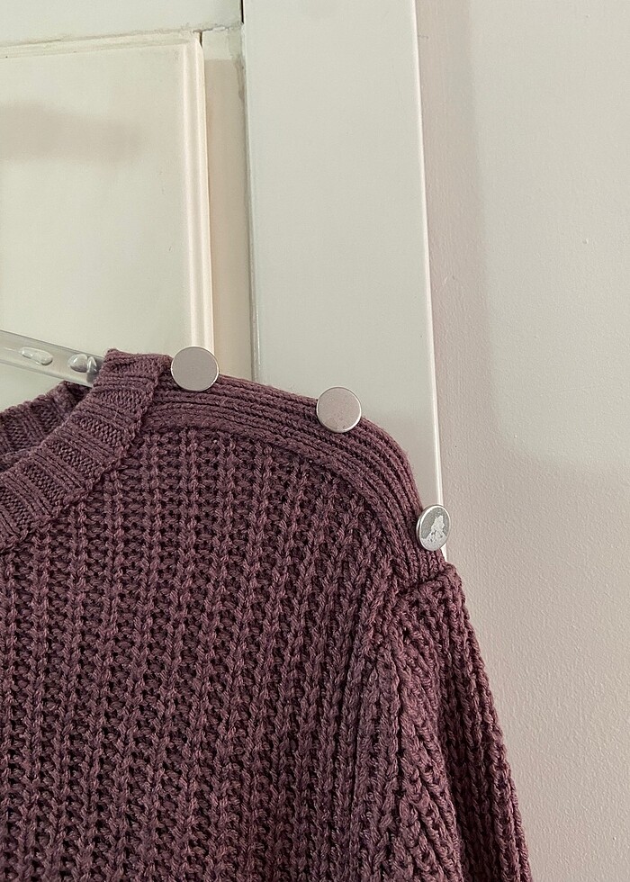 Yumuş yumuş batmayan ve terletmeyen çok güzel bir kazak omzunda düğme detayları var. Salaş kesim mor ile gül kursuna çalan bir renkte hiçbir deformesi yoktur