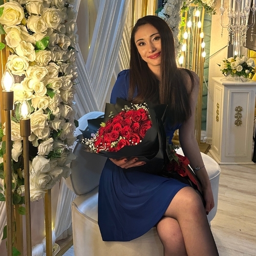 Kırmızı Saten Çiçek detaylı Uzun Abiye Elbise